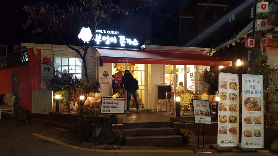 저녁식사를 마치고 저녁 9시경 궁금한 나머지 혼자 집으로 가는길에 부엉이돈가스 신촌점을 방문해 보았다. 저녁 식사 시간때도 지났고 추운 날씨에도 불구하고 문밖에서 고객이 웨이팅을 하고 있었다. 줄서서 먹는게 취미지만 저녁을 거하게 먹었고 너무 추웠고 예전에 맛본 경험도 있고해서 눈 도장만 찍고 나왔다.