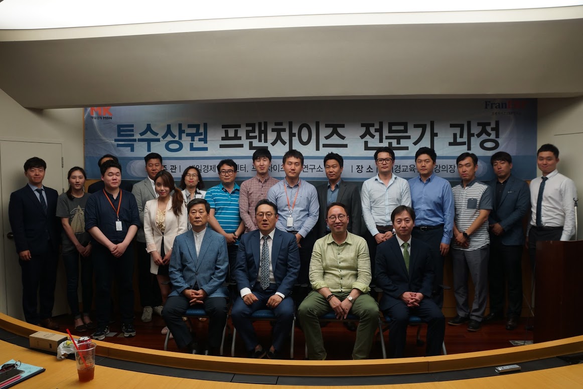 <좌측 앞줄 프랜차이즈이알피연구소 김창수상무,이창용주임교수,마마쿡찬한대희대표이사(2기회장),화우법무법인 전상오변호사(강사)>